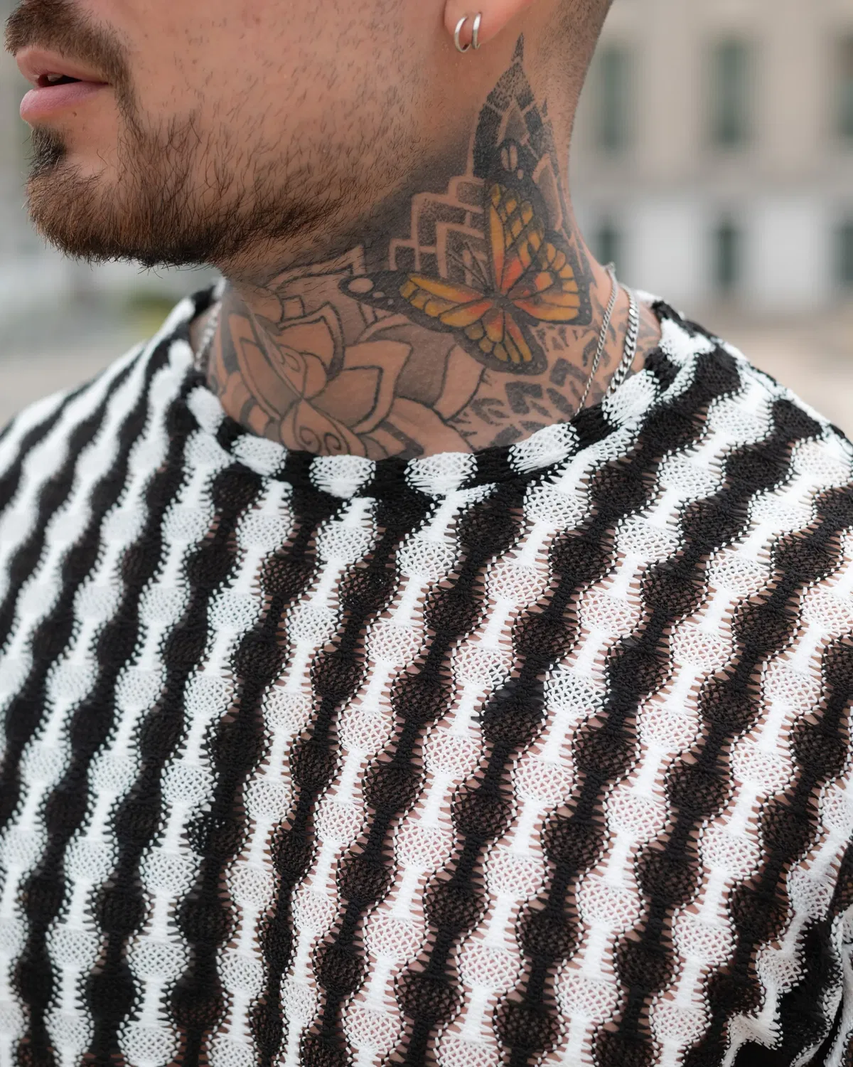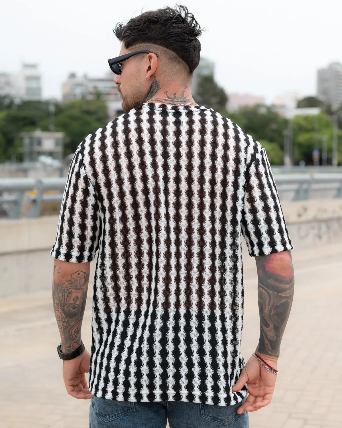 Remera óptica en blanco y negro, con un patrón geométrico que genera un efecto visual dinámico y moderno. Diseñada para quienes buscan una prenda diferente, con identidad y estilo urbano.